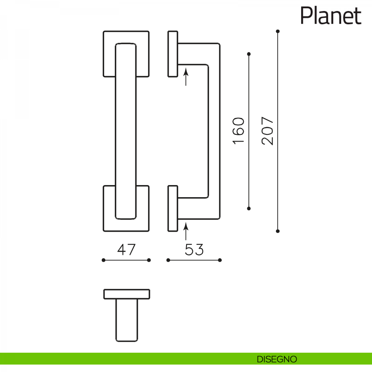 Il design del maniglione quadrato per porta Planet Q Olivari