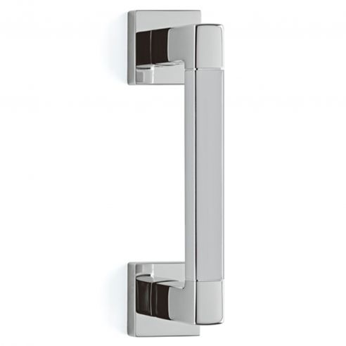 Maniglione per porta Planet Q Bicolor Olivari con rosette quadrate.