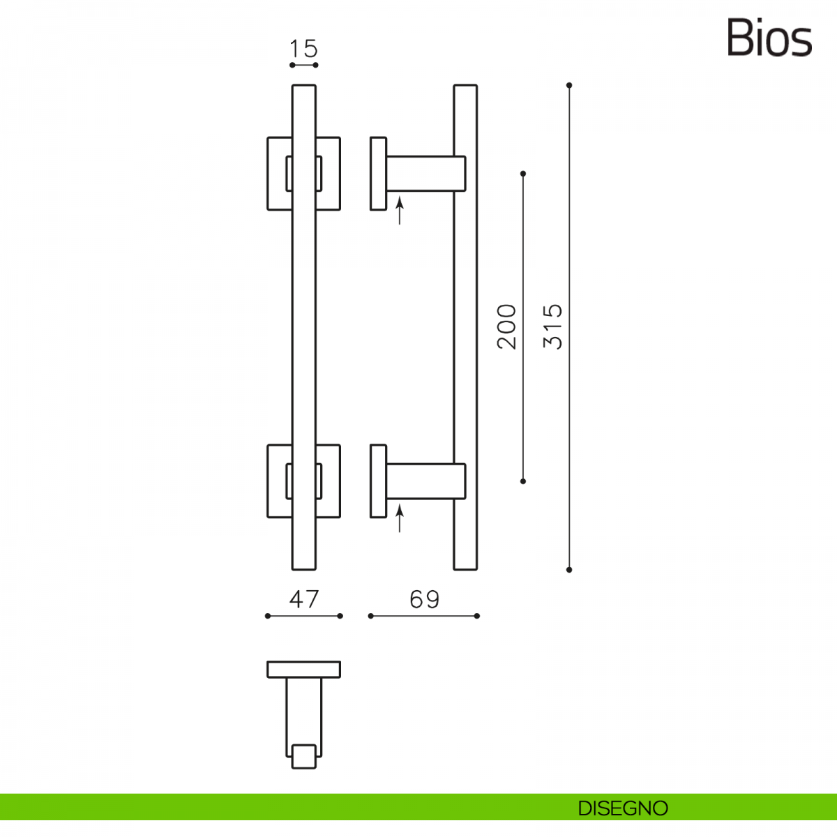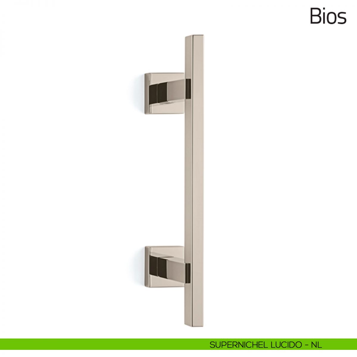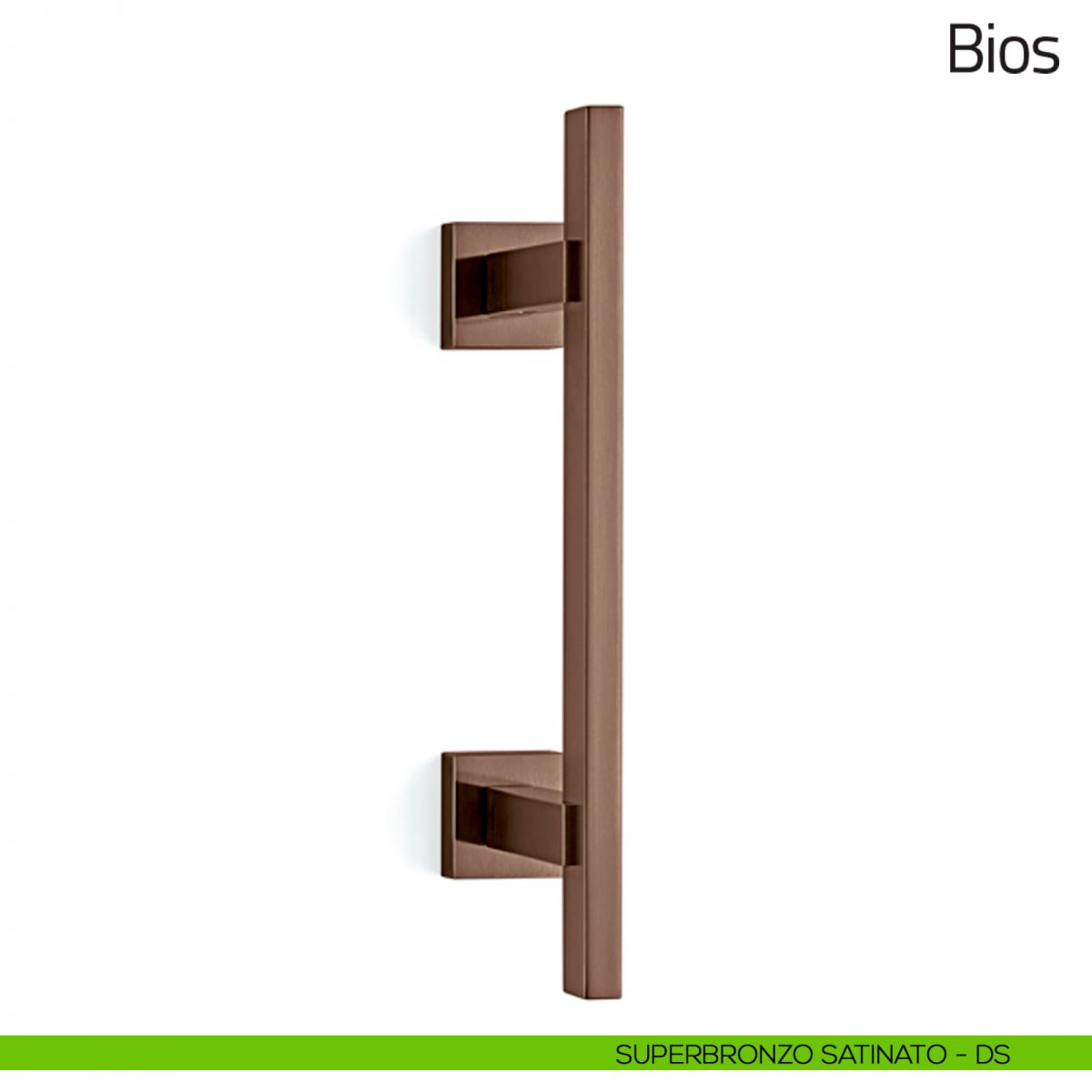 Maniglione per porta Bios Olivari misura 315 mm con rosette quadrate. Design by Franco Sargiani.