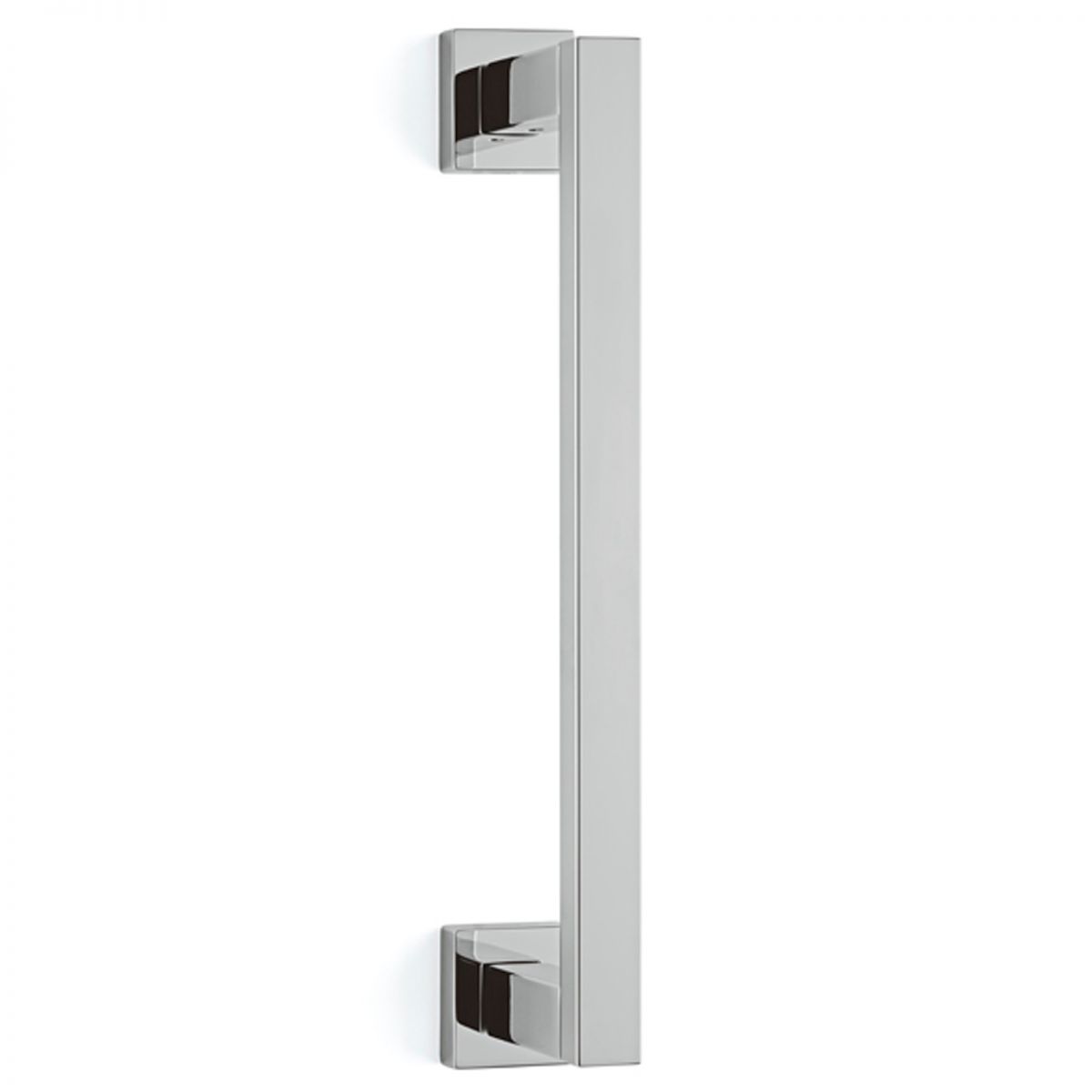 Maniglione per porta Diana Olivari zancato con rosette quadrate.