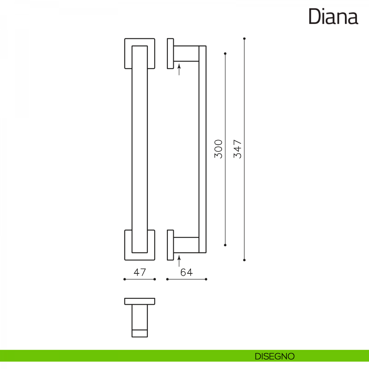 Studio Olivari progetta una serie di maniglioni moderni per portoni, che porta il nome di Diana. La serie Diana Olivari appartiene alla linea di maniglioni per portoni esterni. Il maniglione per porta scorrevole in vetro Diana è indicato in arredamenti moderni, dove la ricercatezza del design diventa elemento distintivo del gusto.