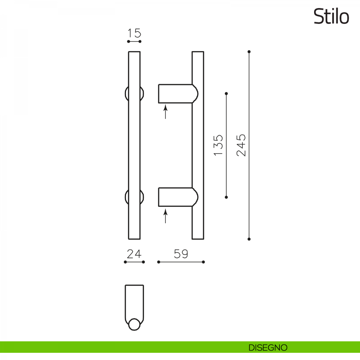 Maniglione per porta Stilo Olivari misura 245 mm senza rosette. Design by Enzo Mari.