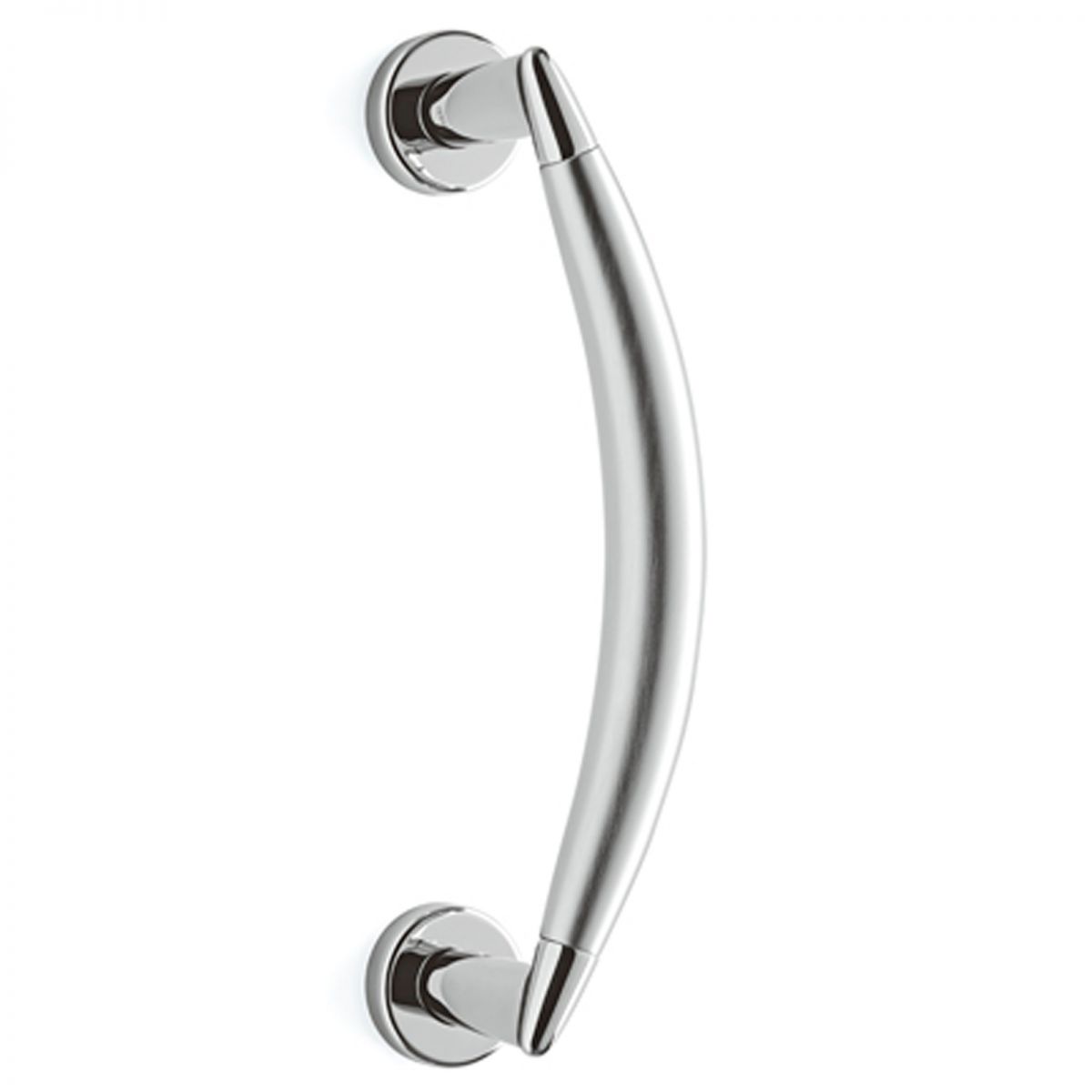 Maniglione per porta Aster zancato con rosette tonde.