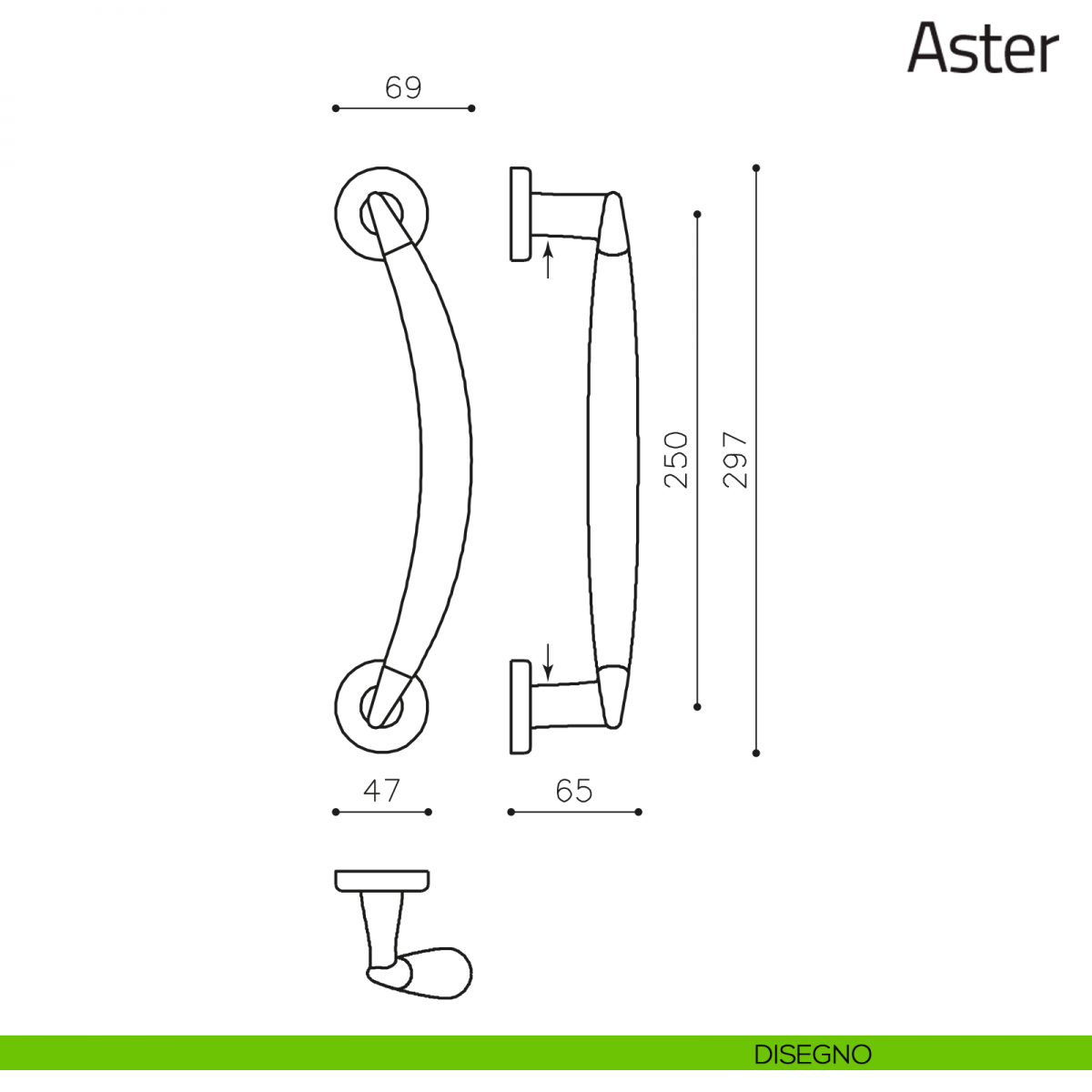 Il design del maniglione zancato per portone Aster Olivari