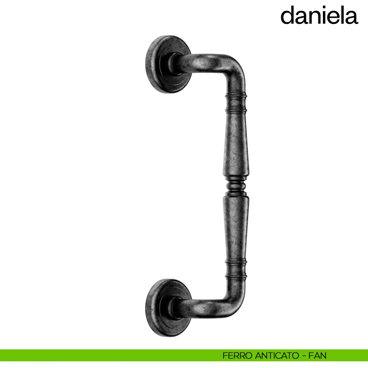 Maniglione per porta Daniela dnd Handles zancato singolo con rosette tonde.