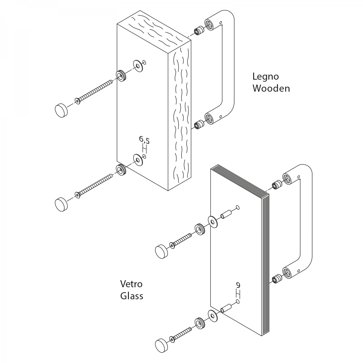 Kit fissaggio singolo maniglioni senza rosette su porta legno Valli.