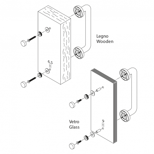 Kit fissaggio singolo maniglioni con rosette su porta legno e vetro Valli.
