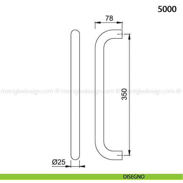 Maniglione per porta 5000 Hoppe in alluminio interasse 350 mm.