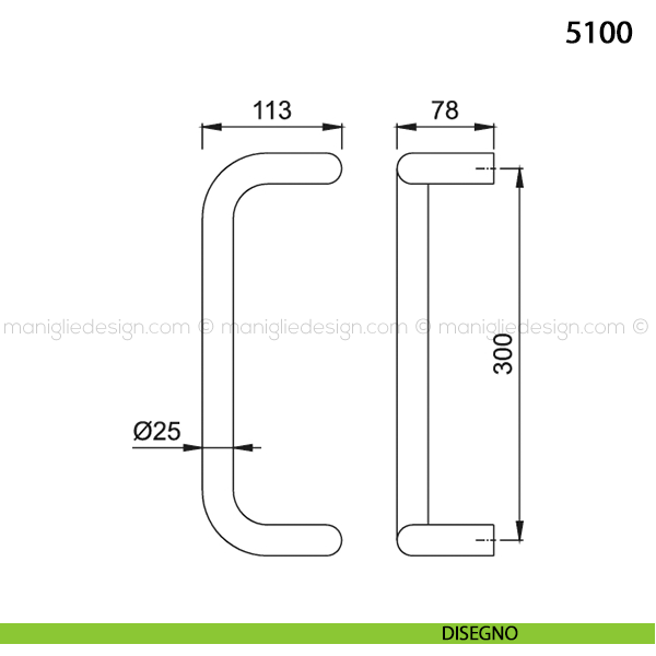 Maniglione per porta 5100 Hoppe in alluminio diametro 25 mm.