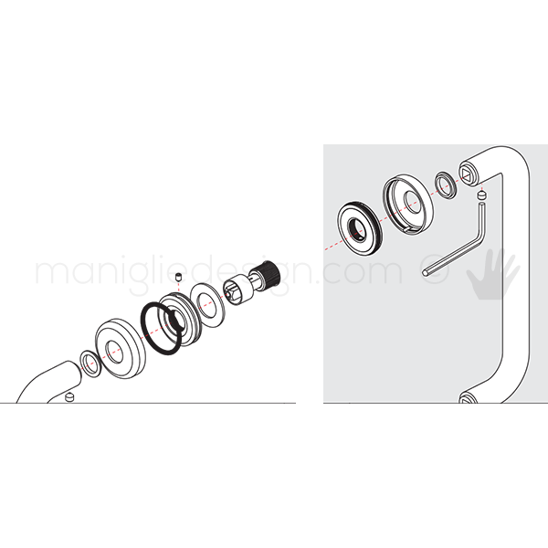 Kit fissaggio VETRO passante accoppiato per maniglioni Colombo Design rosetta 50 mm