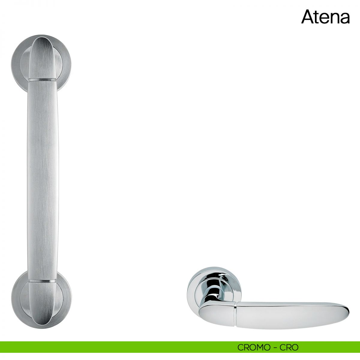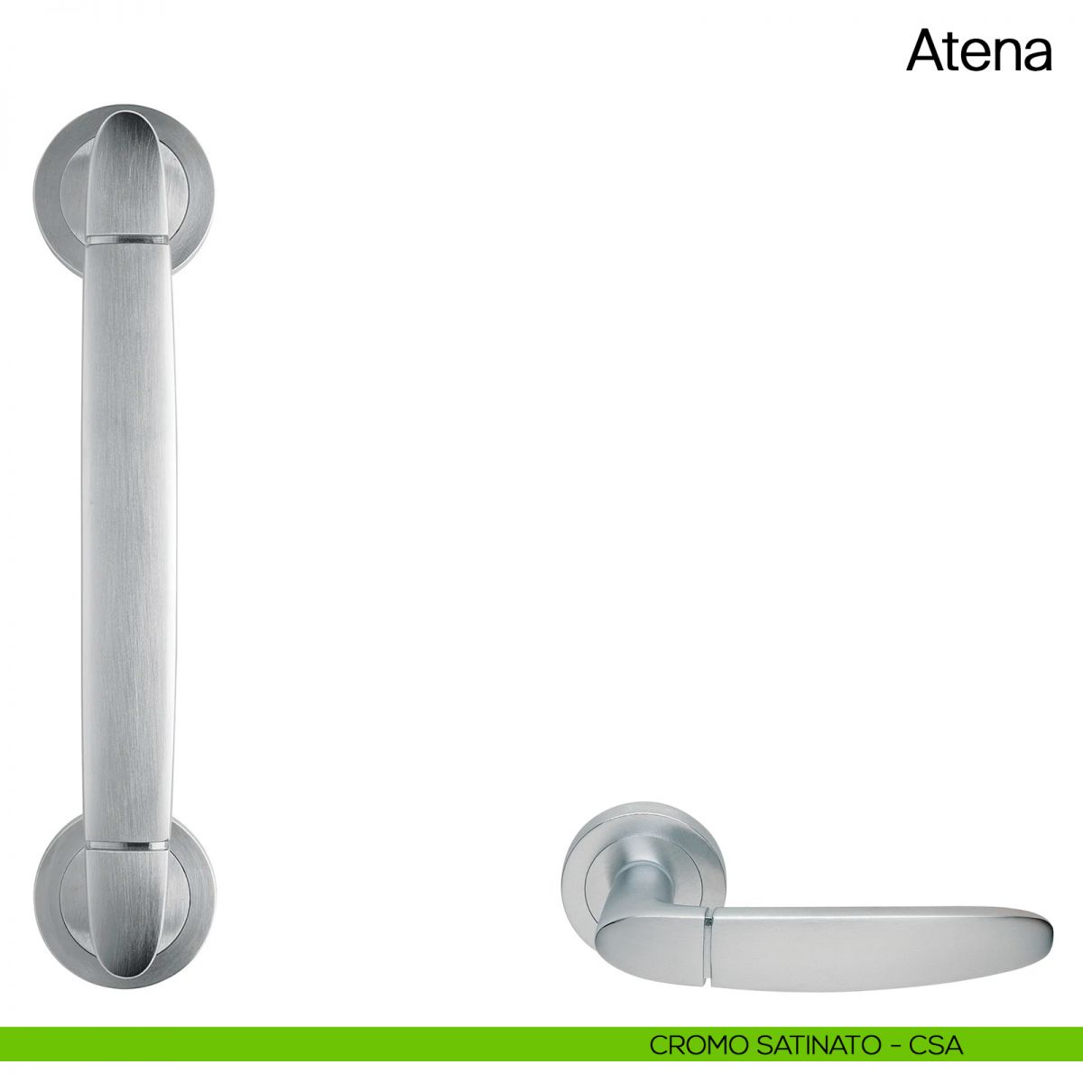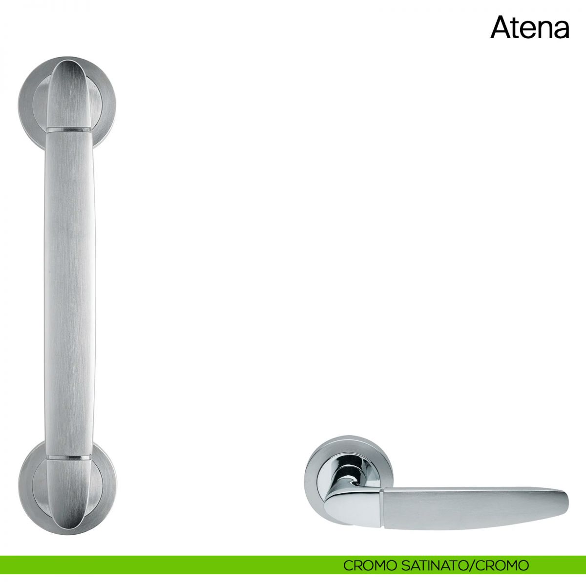 Maniglione per porta Atena Manital con rosette tonde. Design by Maurizio Giordano e Roberto Grossi.
