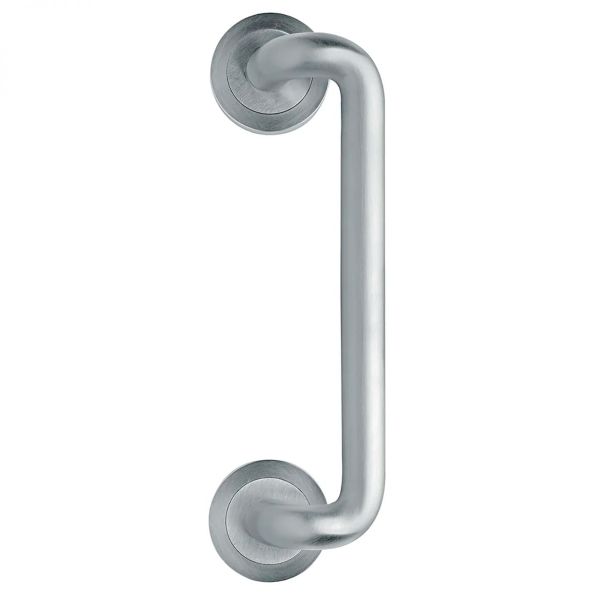 Il maniglione viene venduto comprensivo di rosette, a richiesta è possibile ordinare la versione senza rosette per fissaggio singolo o accoppiato per applicazioni su porte in legno/ferro e vetro, specificare nelle note la tipologia di fissaggio idonea alle proprie esigenze di installazione.
