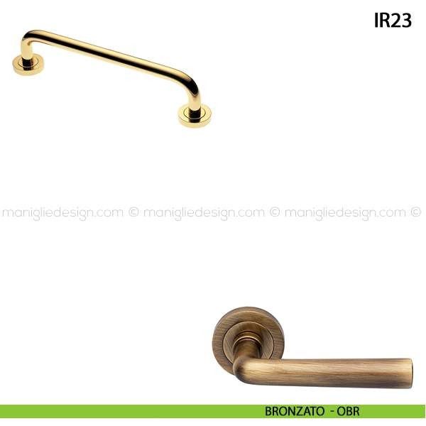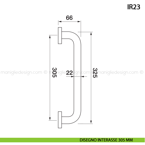 Maniglione per porta Art.IR23 Manital con rosette tonde interasse 305 mm. Design by Studio Manital.