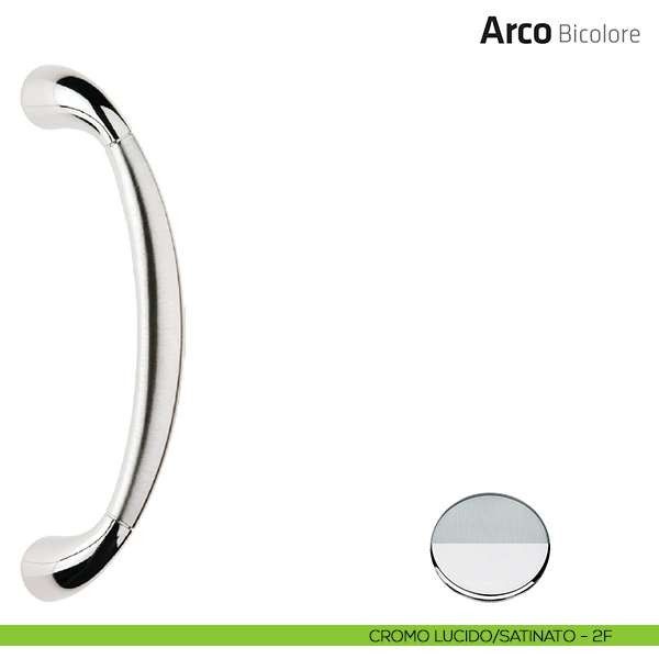 Brillante, specchiato, effetto tipico del metallo sono le caratteristiche del cromato lucido e del cromo satinato. Il maniglione per portone esterno Arco bicolore ha una linea moderna e innovativa che unita alla finitura cromata diventa un prodotto dal design unico e riconoscibile.