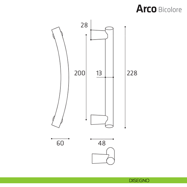 Maniglione per porta Arco Bicolore Comit singolo 228 mm