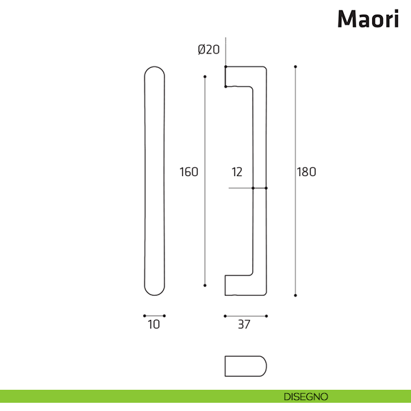 Maniglione per porta Maori Comit misura 180 mm singolo senza rosette.