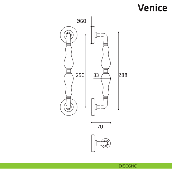 Il maniglione classico per portone Venice è stata pensato per chi desidera una maniglione classico per l'arredamento in stile antico. Il maniglione Venice Comit è l'accessorio per porta ideale per tutti gli ambienti che traggono ispirazione dal passato. Impreziosito da affascinanti particolari retrò, come le finiture in ottone bronzato, il maniglione in stile antico arreda diverse tipologie di porte. Disegnato da abili maestri che lavorano l'ottone, il maniglione per porta d'ingresso Venice si contraddistingue per i motivi ornamentali che si intrecciano dando vita a un prodotto unico nel suo genere. Venice viene prodotto dalle sapienti mani di artigiani italiani, che intraprendono il desiderio del disegnatore che l'ha ideata. Il maniglione in ottone è un elemento d'arredo indispensabile per gli habitat più tradizionali e arreda con gusto e stile permettendo a chiunque di abbinarlo facilmente a tutte le tipologie di porte esterne e portoni in finiture in legno. Il maniglione in ottone bronzato Venice è stato pensato per valorizzare ogni ambiente con un tocco di design Made in Italy.