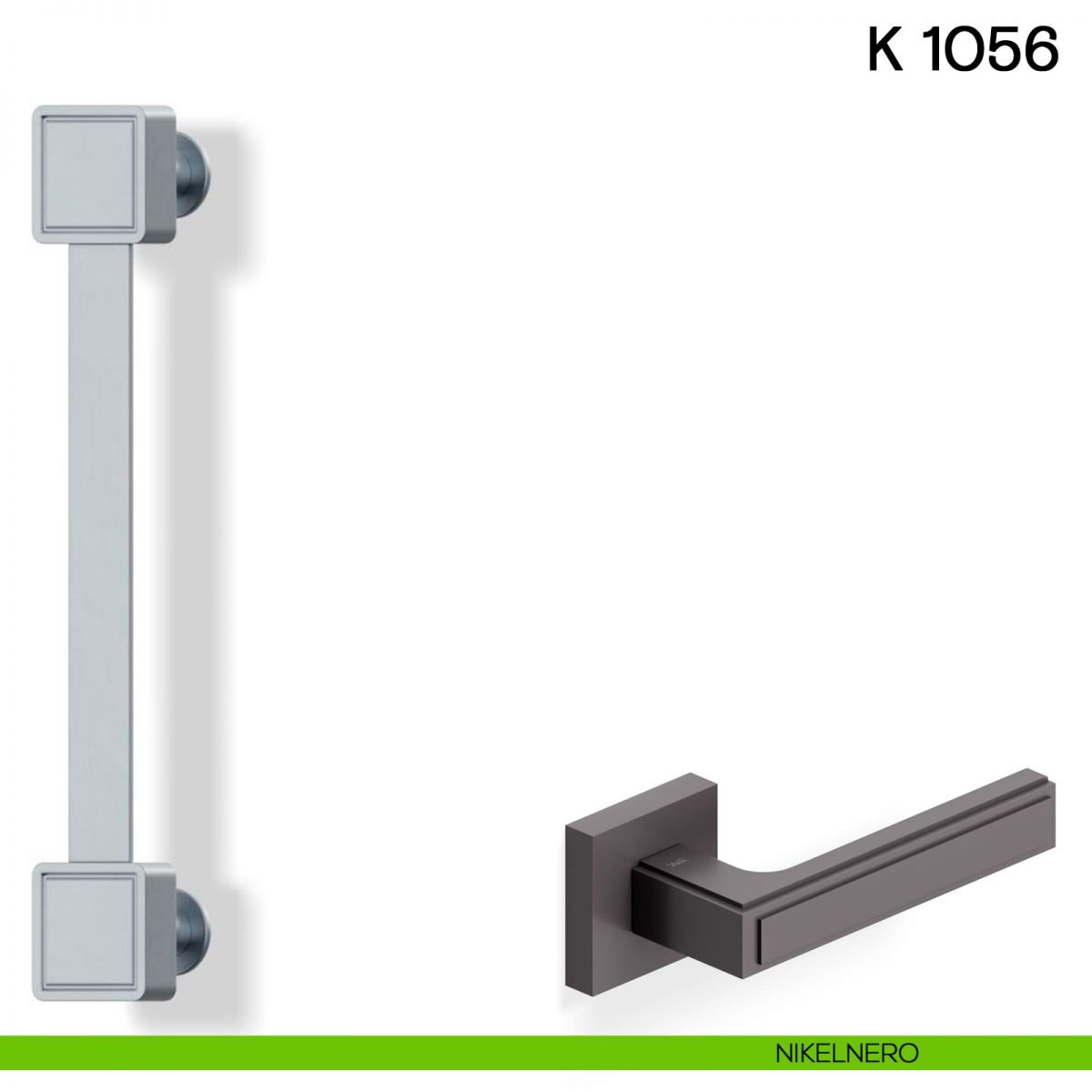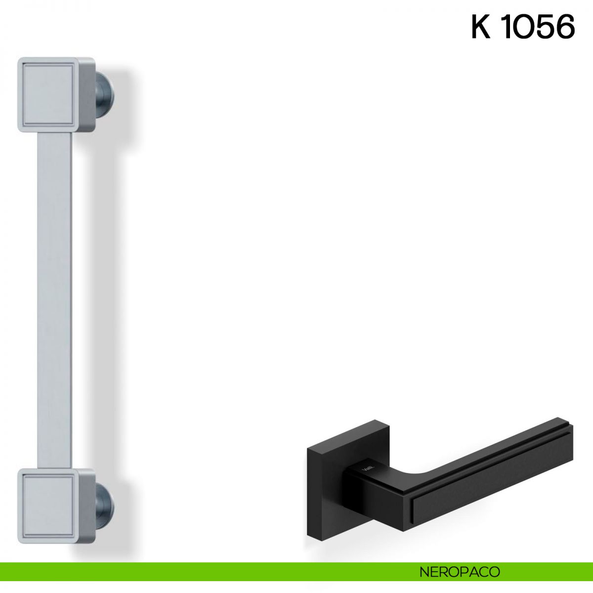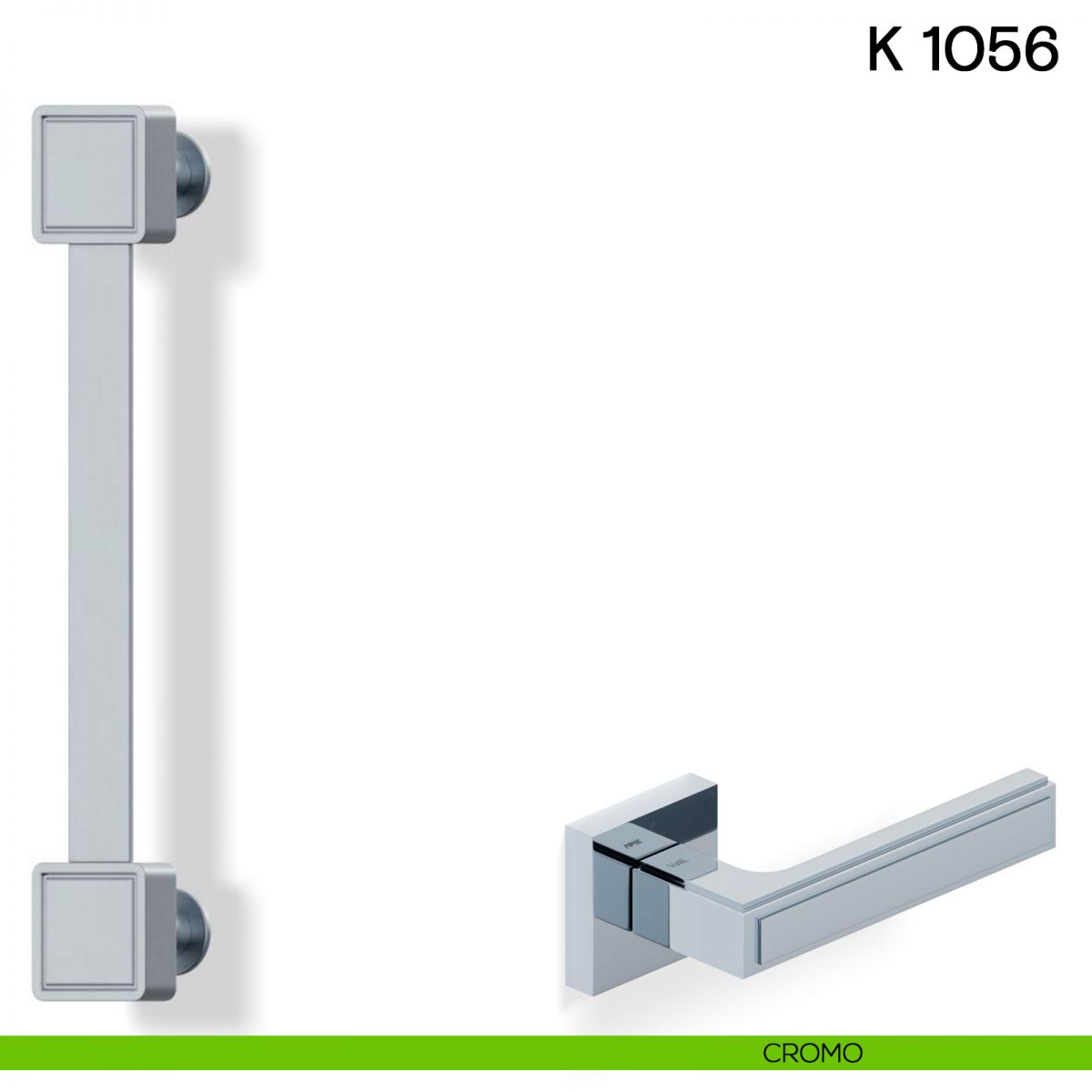 Maniglia per porta interna H 1056 Valli collezione Lab con rosetta e bocchetta quadrata.