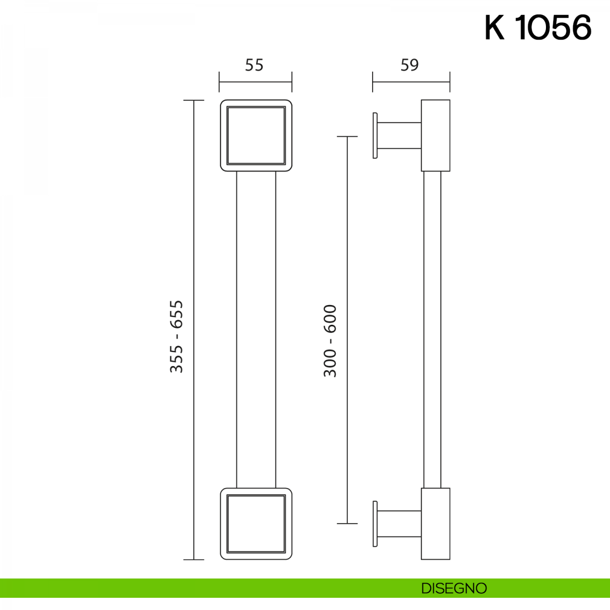 Maniglione per porta K 1056 Valli collezione Lab senza rosette.