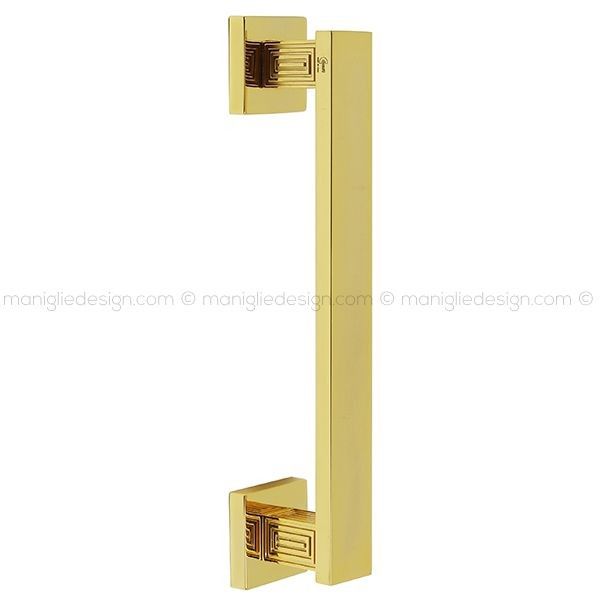 Maniglione per porta Roma Comit misura 250 mm accoppiato con rosette quadrate.