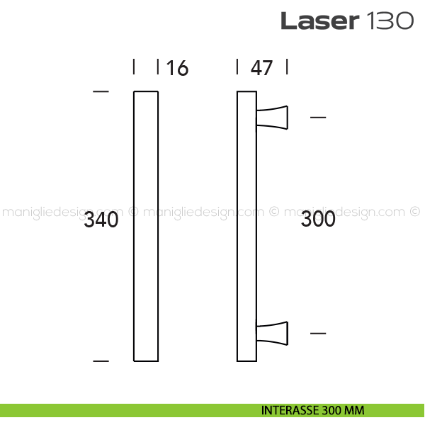 Maniglione per porta 130 Laser Reguitti senza rosette.