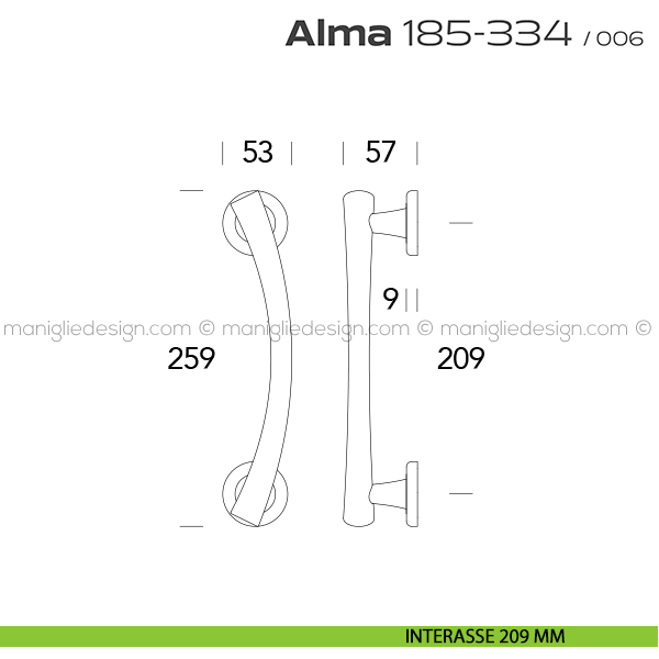 185-334 Alma Reguitti viene offerto anche nella variante maniglia per porta. Scopri la gamma completa Reguitti 185-334 Alma per completare con stile il tuo arredamento.