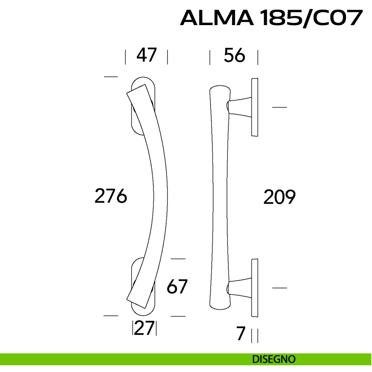 185 Alma Reguitti viene offerto anche nella variante maniglia per porta. Scopri la gamma completa Reguitti 185 Alma per completare con stile il tuo arredamento.