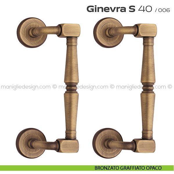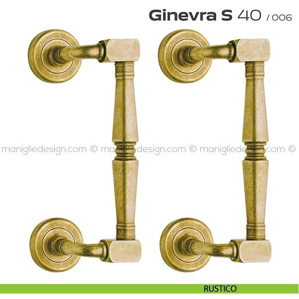 Maniglione per porta 040 Ginevra S Reguitti zancato singolo con rosette tonde ad avvitare.