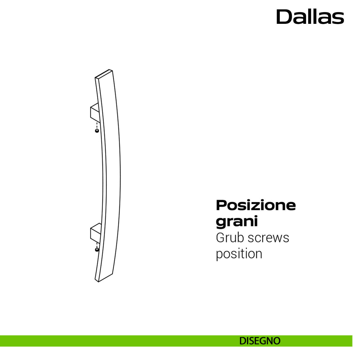 Maniglione curvo in acciaio per porta Dallas Reguitti Inox senza rosette comprensivo di kit per il fissaggio. Design by Studio Reguitti Inox.