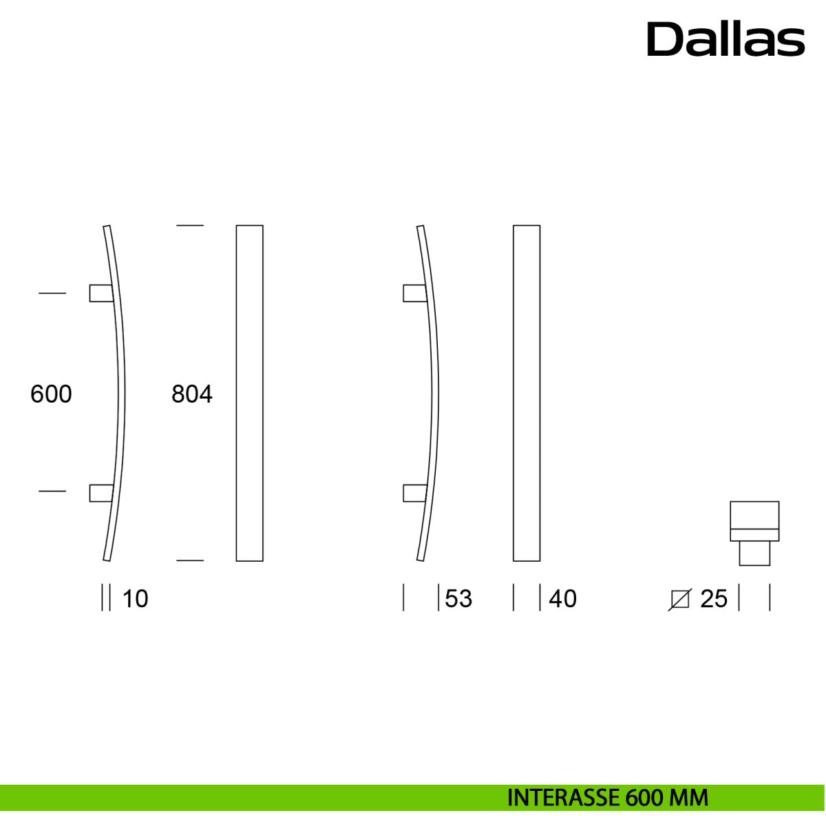 - Lunghezza/Interasse 800/600 mm