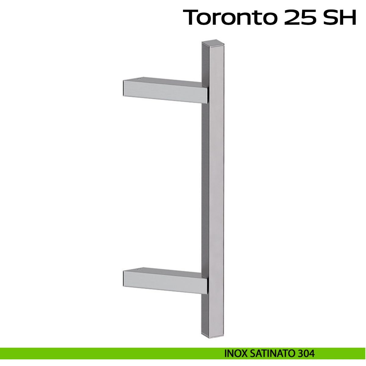 Maniglione zancato in acciaio per porta Toronto 25 SH Reguitti Inox senza rosette comprensivo di kit per il fissaggio. Design by Studio Reguitti Inox.