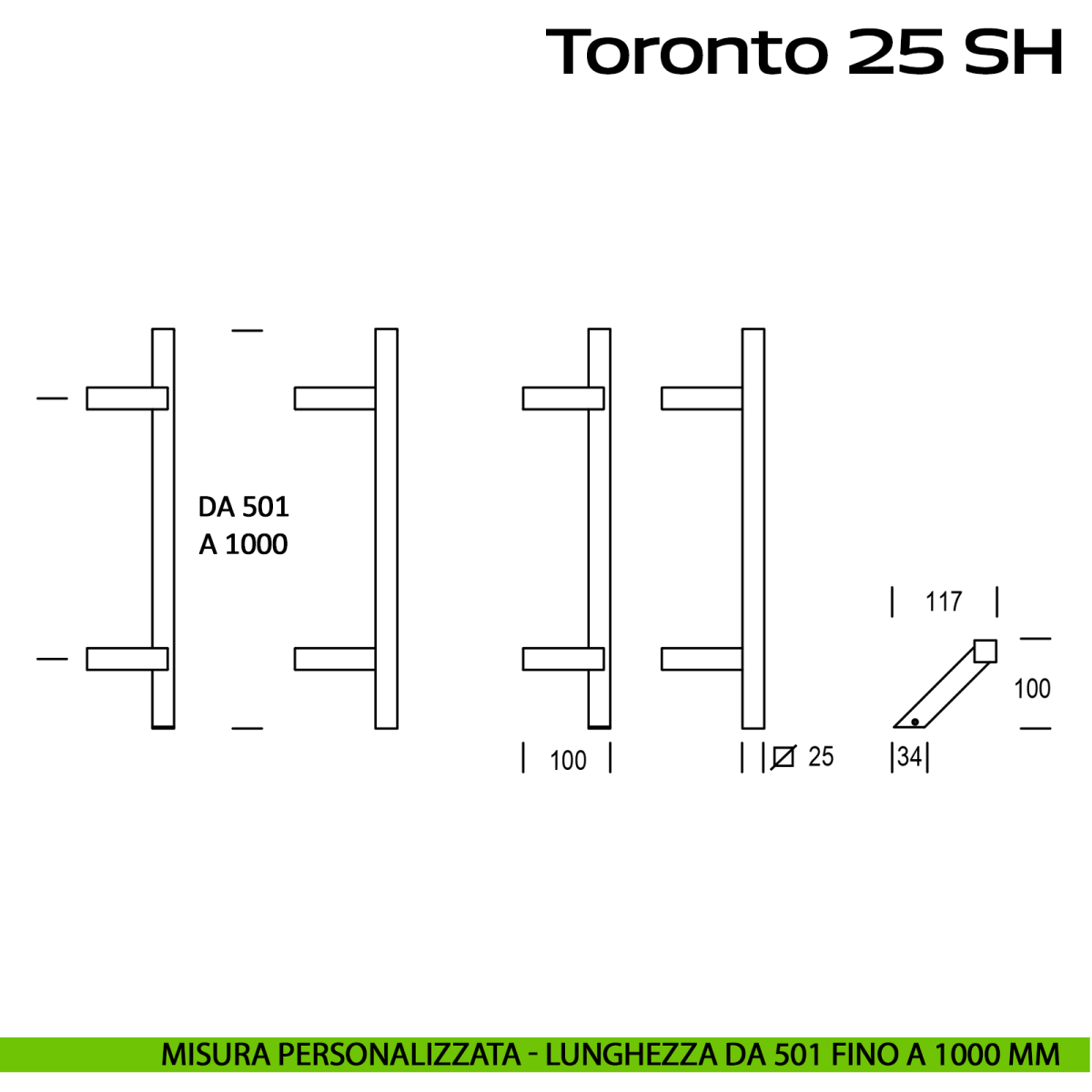 • Lunghezza personalizzata da 501 mm fino a 1000 mm - Tempi di spedizione 20 giorni