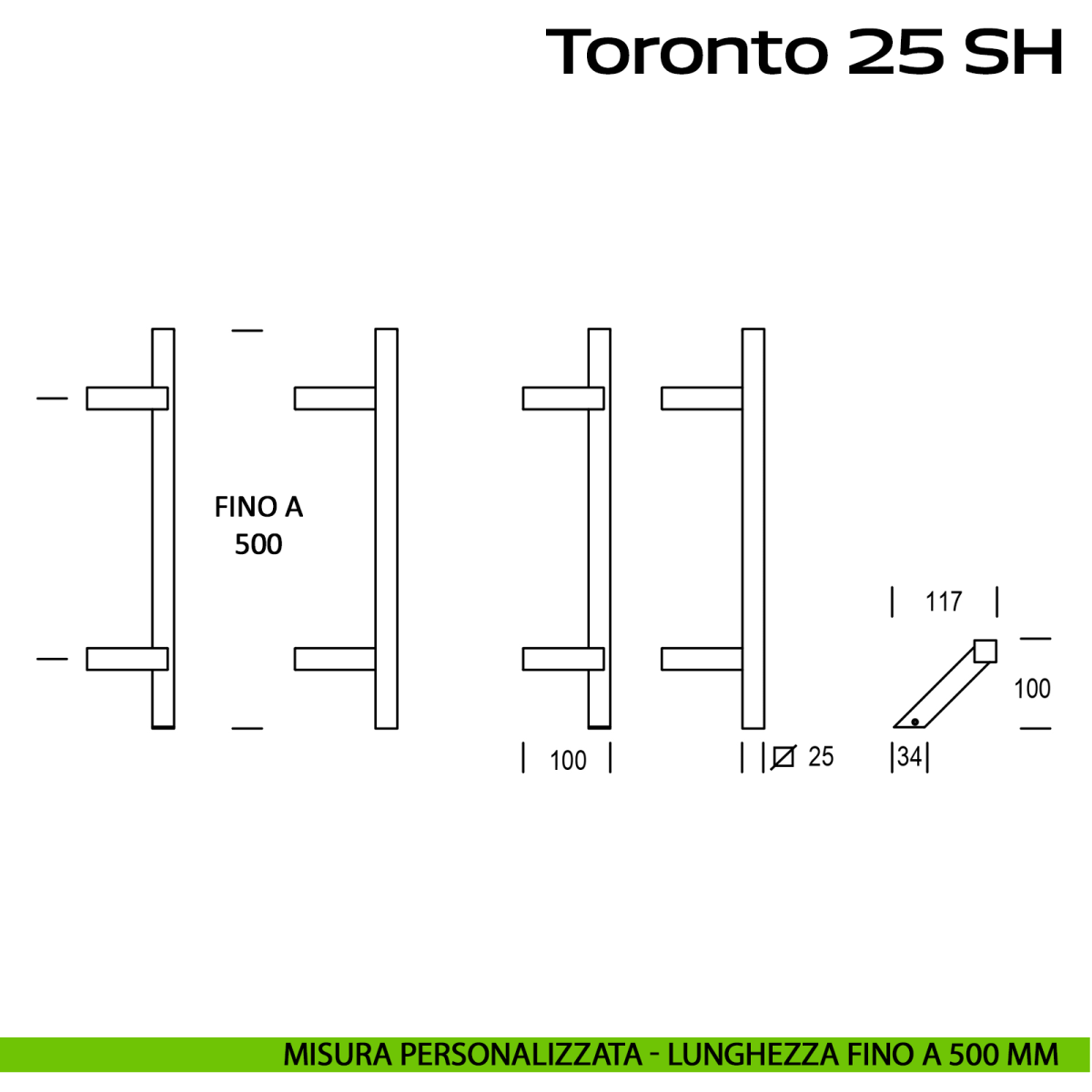 Toronto 25 SH è il maniglione spostato personalizzabile per portoncino esterno Reguitti Inox