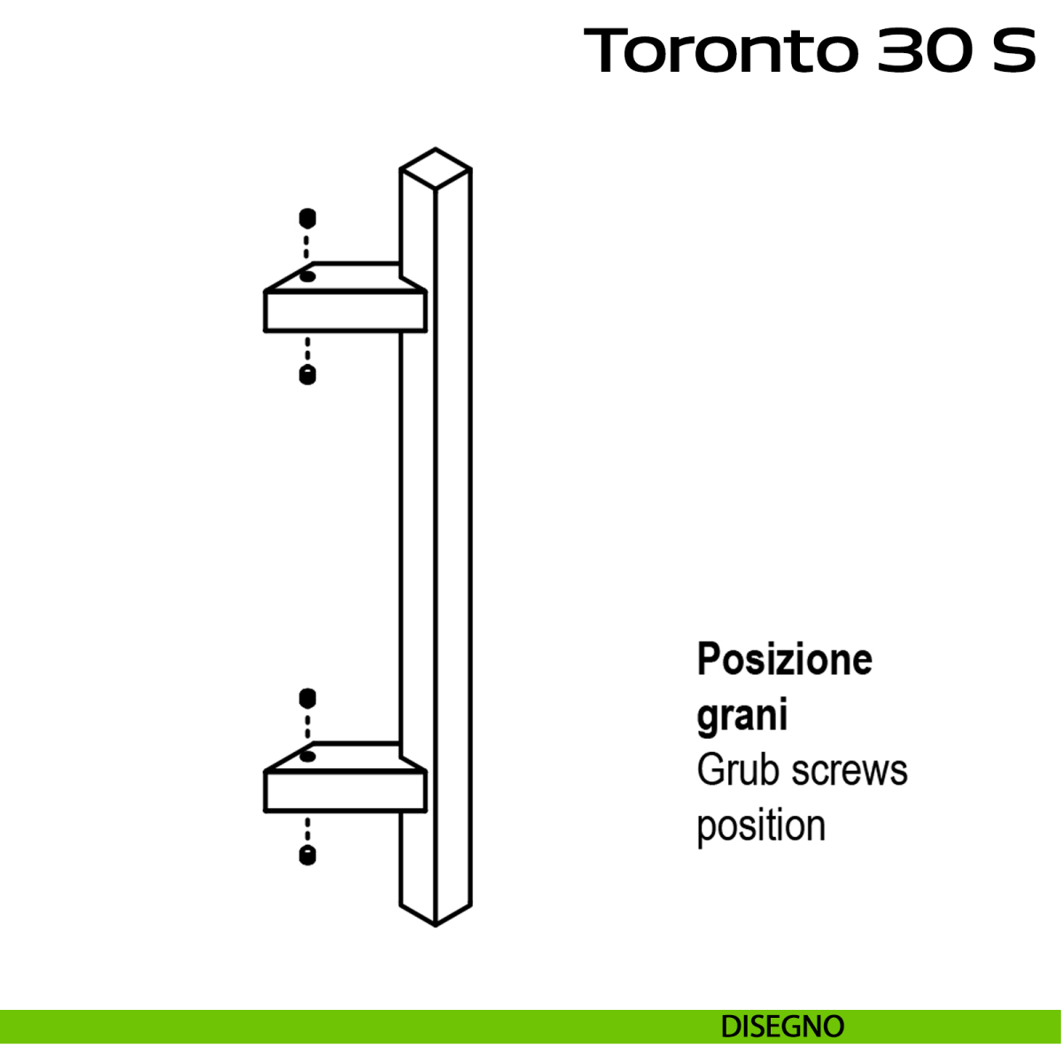 Maniglione in acciaio per porta Toronto 30 S Reguitti Inox zancato senza rosette comprensivo di kit per il fissaggio. Design by Studio Reguitti Inox.