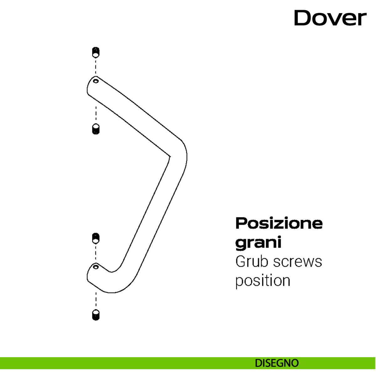 Maniglione triangolare in acciaio per porta diametro 30 mm Dover Reguitti Inox senza rosette comprensivo di kit per il fissaggio.