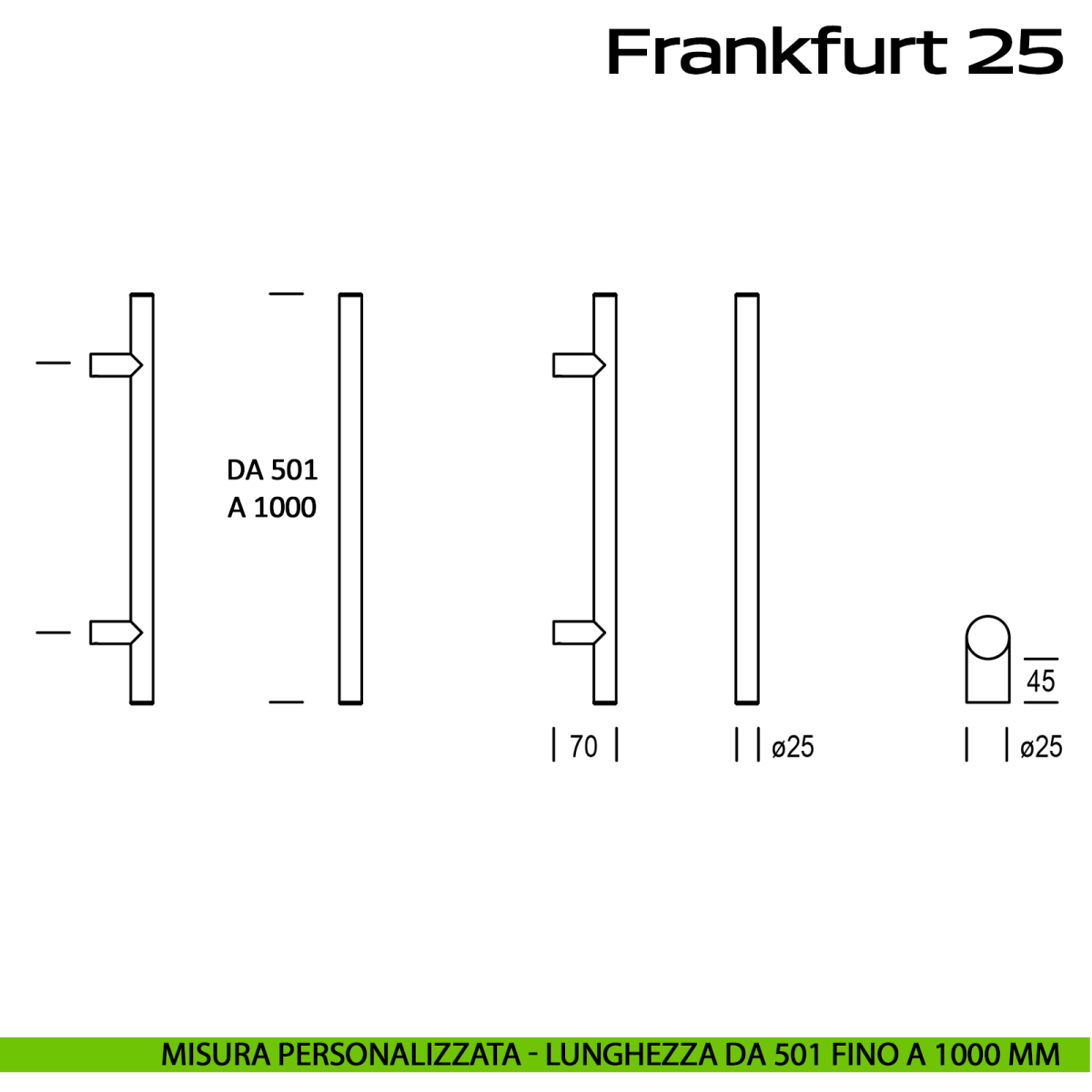 Lo studio di progettazione interno all'azienda Reguitti Inox progetta una nuova linea di maniglioni in acciaio inox chiamato Frankfurt 25 D25MD Reguitti Inox, un prodotto che interpreta in chiave minimal lo stile moderno dei best seller d'arredo mediante la riduzione delle proporzioni, per esaltare al meglio il design di ambienti contemporanei e di tendenza.