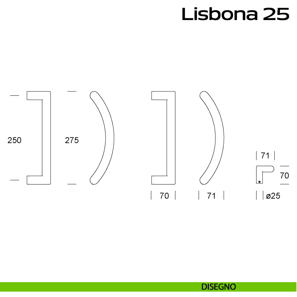 Maniglione zancato in acciaio per porta Lisbona 25 Reguitti Inox