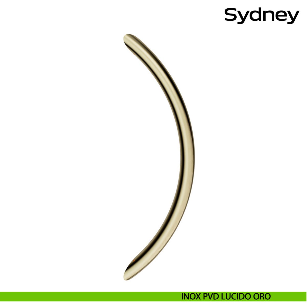Maniglione in acciaio per porta curvo Sydney Reguitti Inox senza rosette comprensivo di kit per il fissaggio.