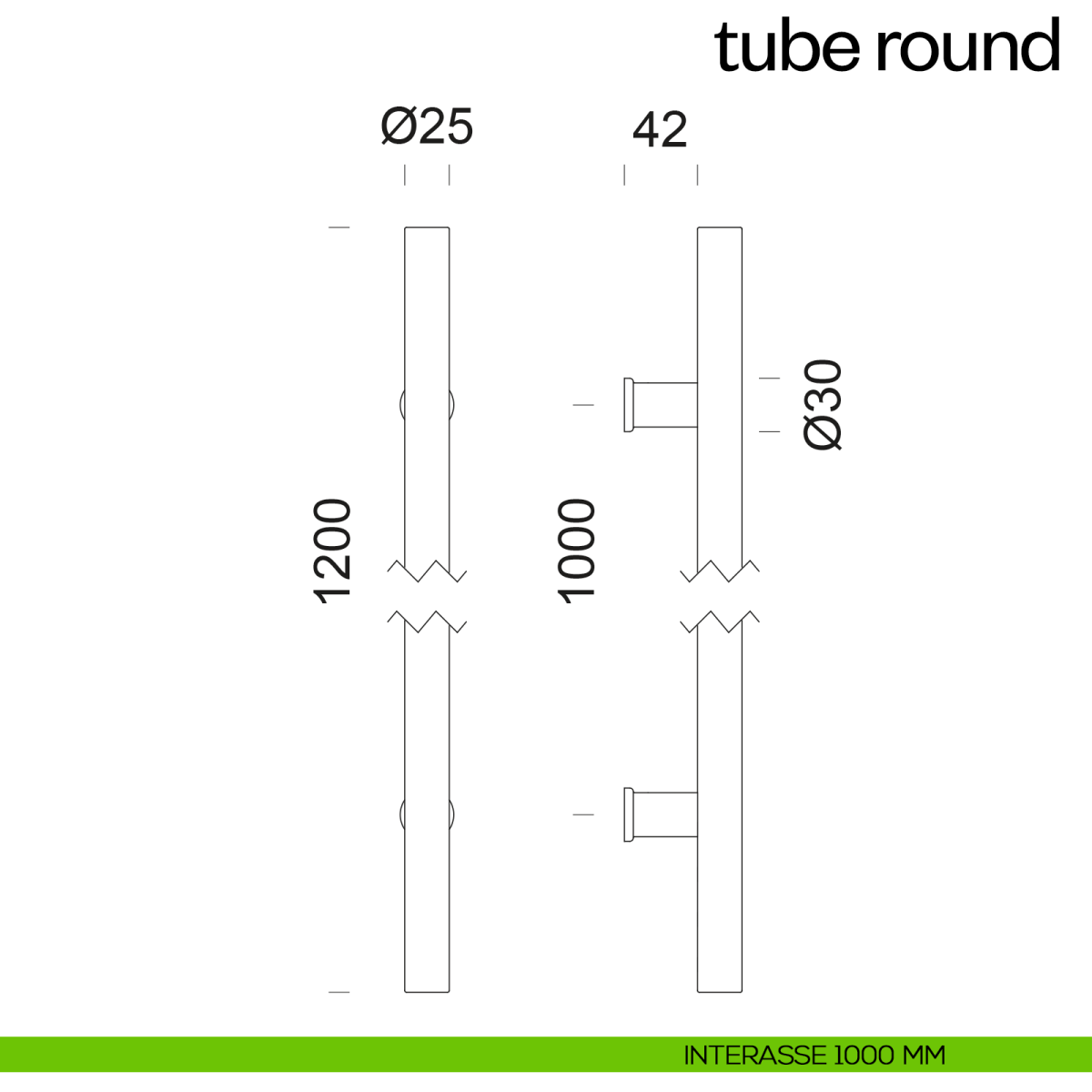 Maniglione per porta Tube Round dnd Handles singolo. Design by dnd Technical Division.