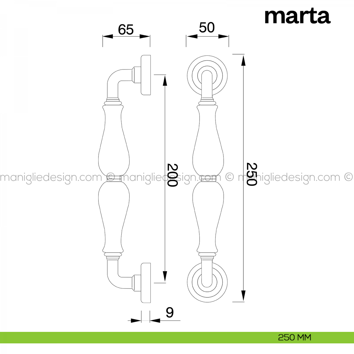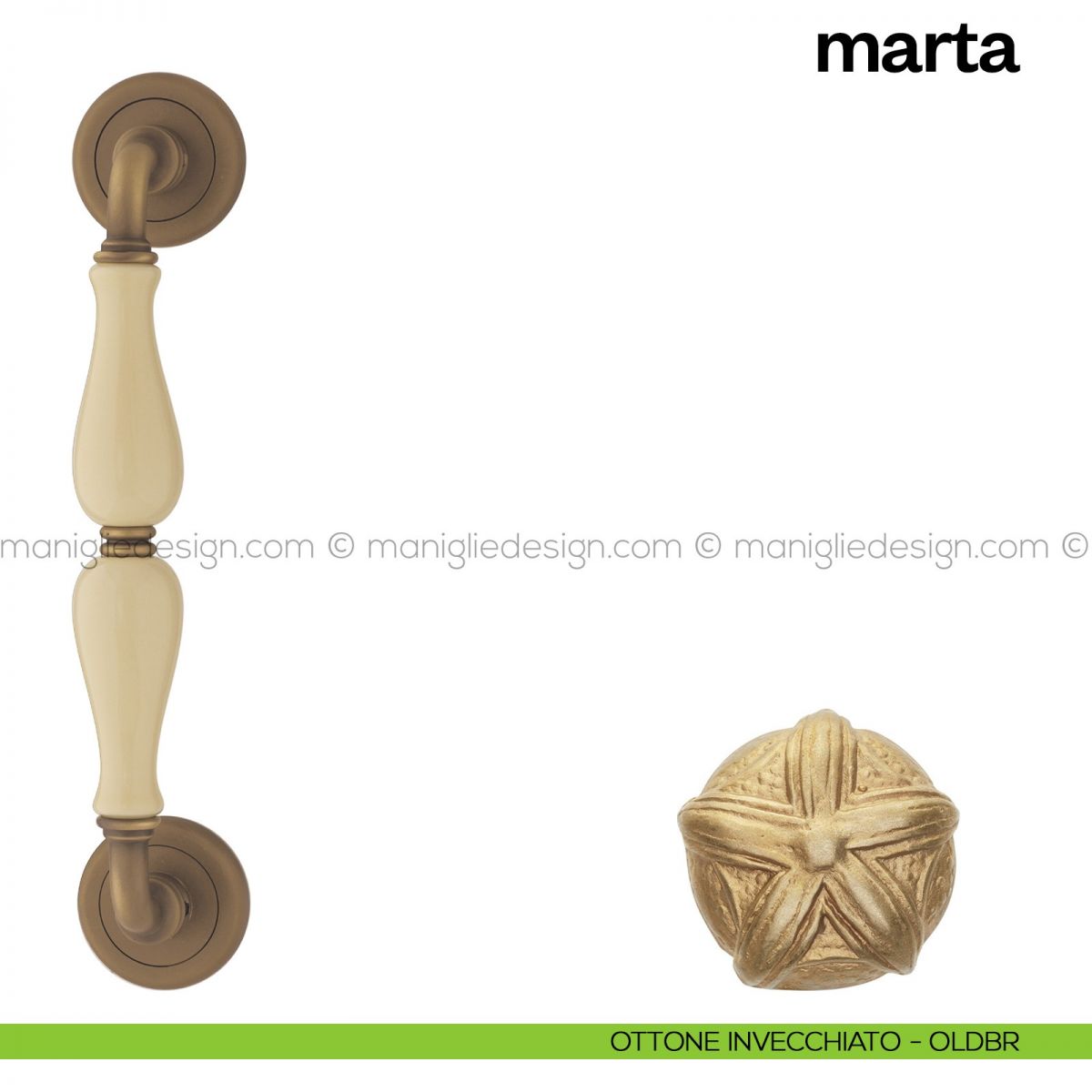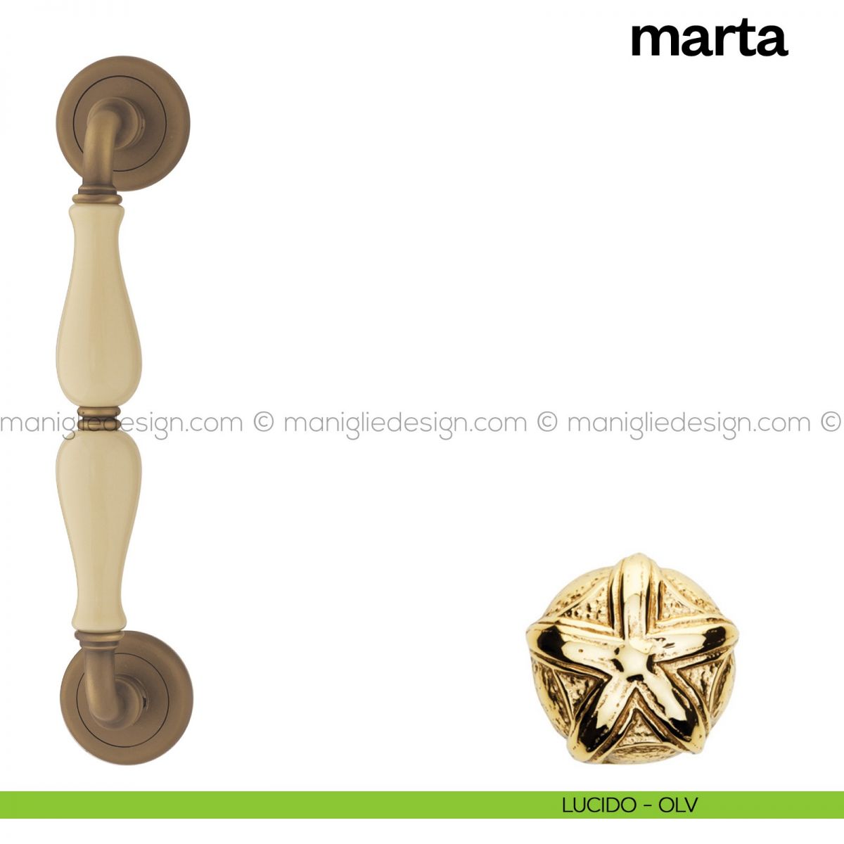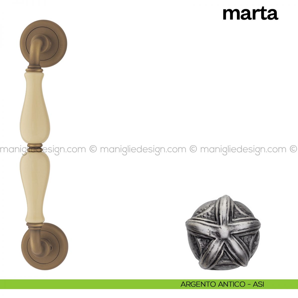 Maniglione per porta Marta Poggi Mariani singolo con rosette.
