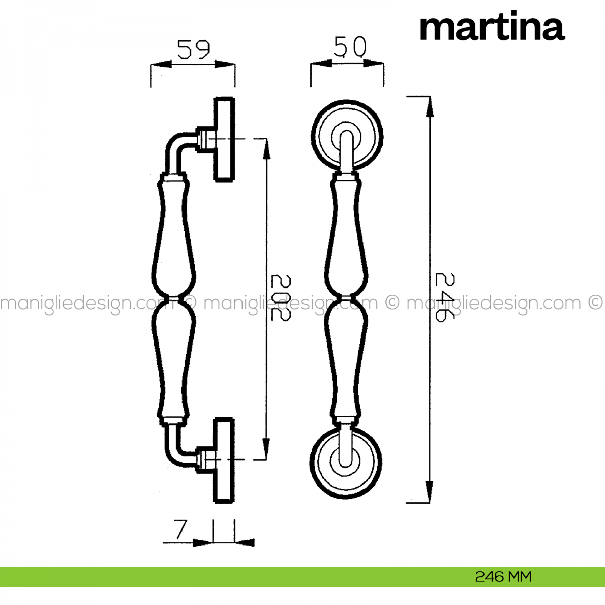 Maniglione per porta Martina Poggi Mariani singolo con rosette.