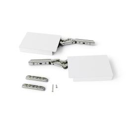 Sistema di braccetti progettato per ante elevabili senza cerniere, con chiusura soft e smontaggio senza attrezzi grazie al sistema a clip.