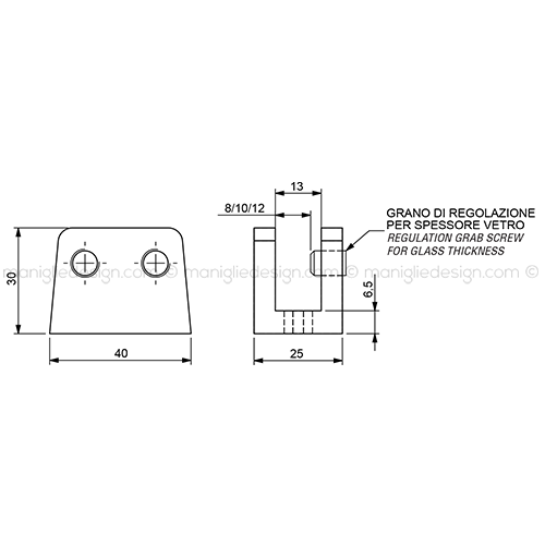 Guida a pavimento per vetro spessore 8-10-12 mm Comit Glass art. MRS011.