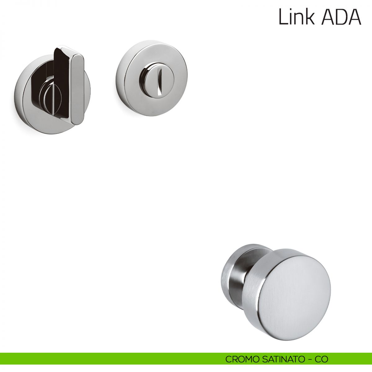 Nottolino per porta Link ADA Olivari con rosetta tonda adatto a rispettare la normativa ADA sui portatori di handicap. Design by Piero Lissoni.