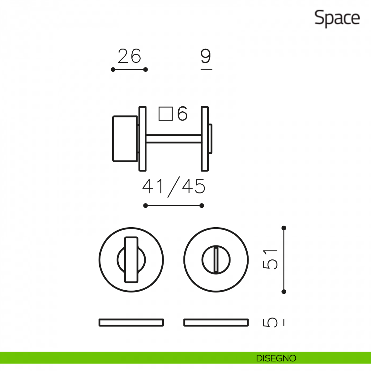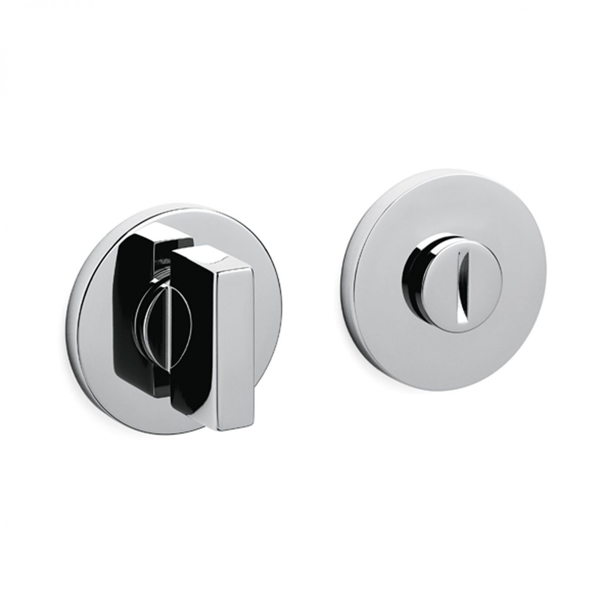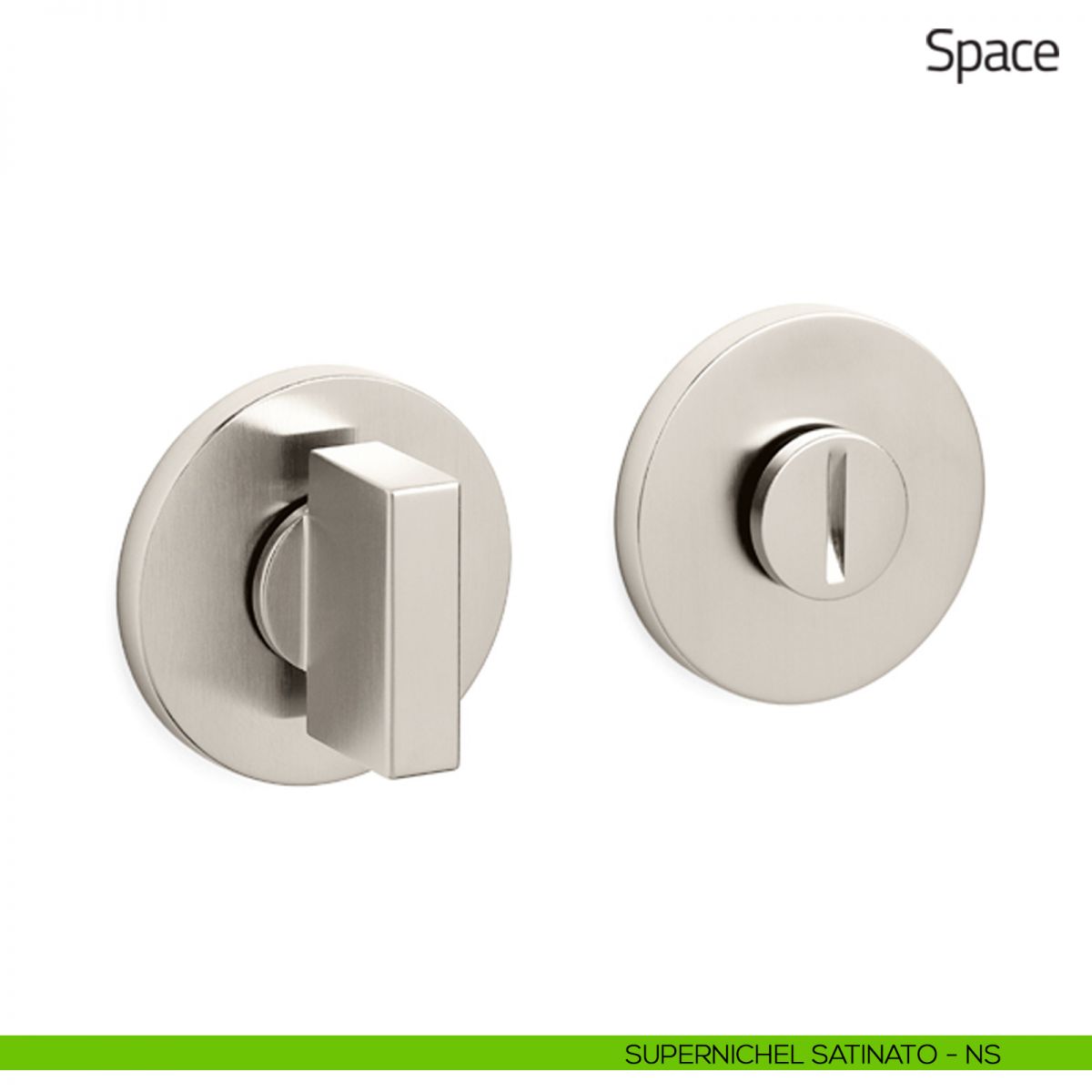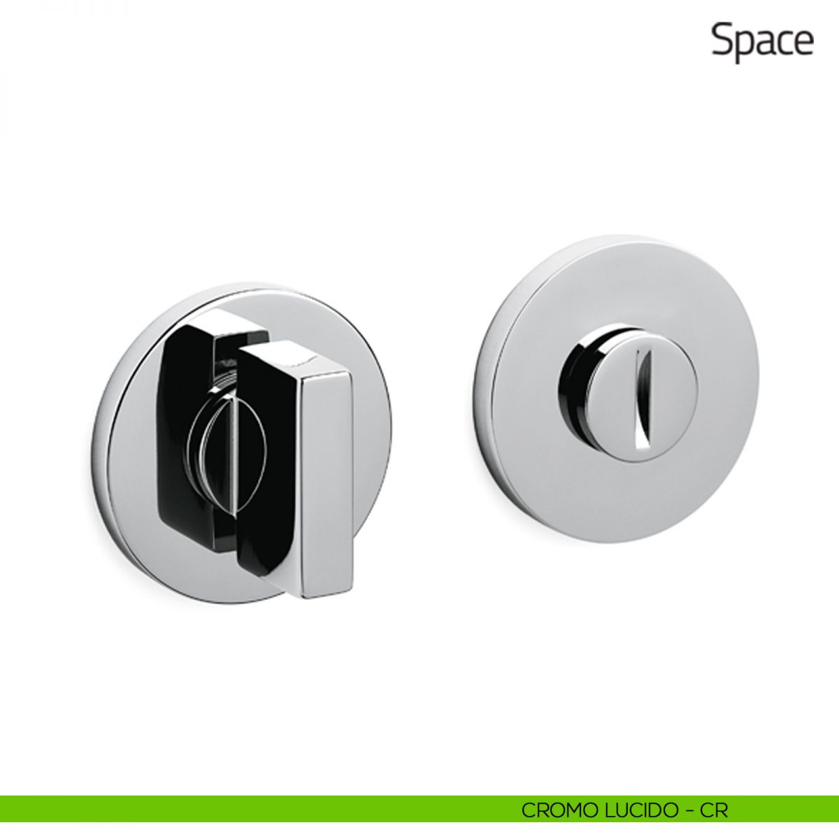 Nottolino per porta Space Olivari con rosetta tonda e segnalatore libero/occupato.