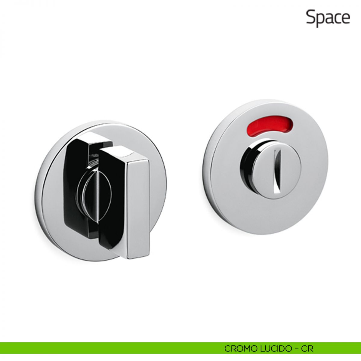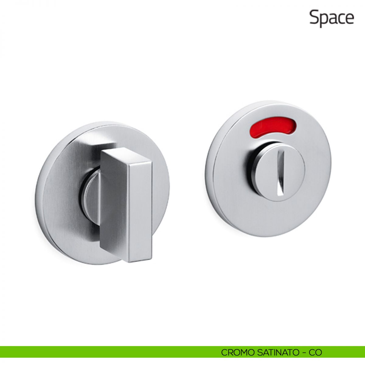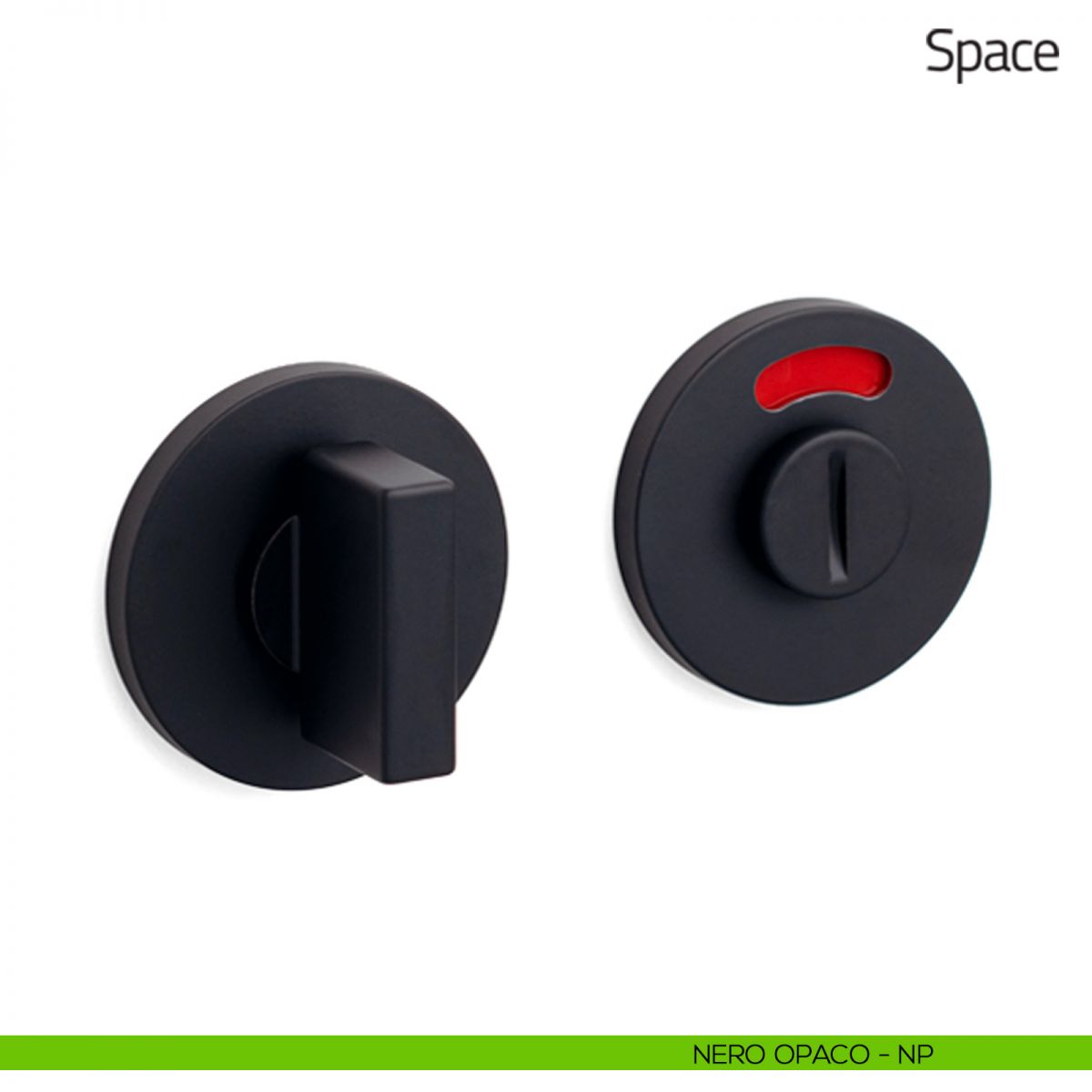 Nottolino per porta Space Olivari con rosetta tonda bassa e segnalatore libero/occupato.