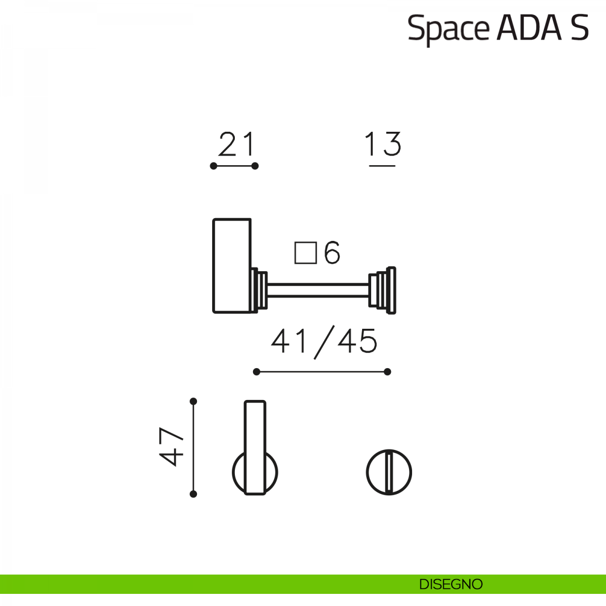 Nottolino per porta Space ADA S Olivari senza rosetta adatto a rispettare la normativa ADA sui portatori di handicap. Design by Studio Olivari.