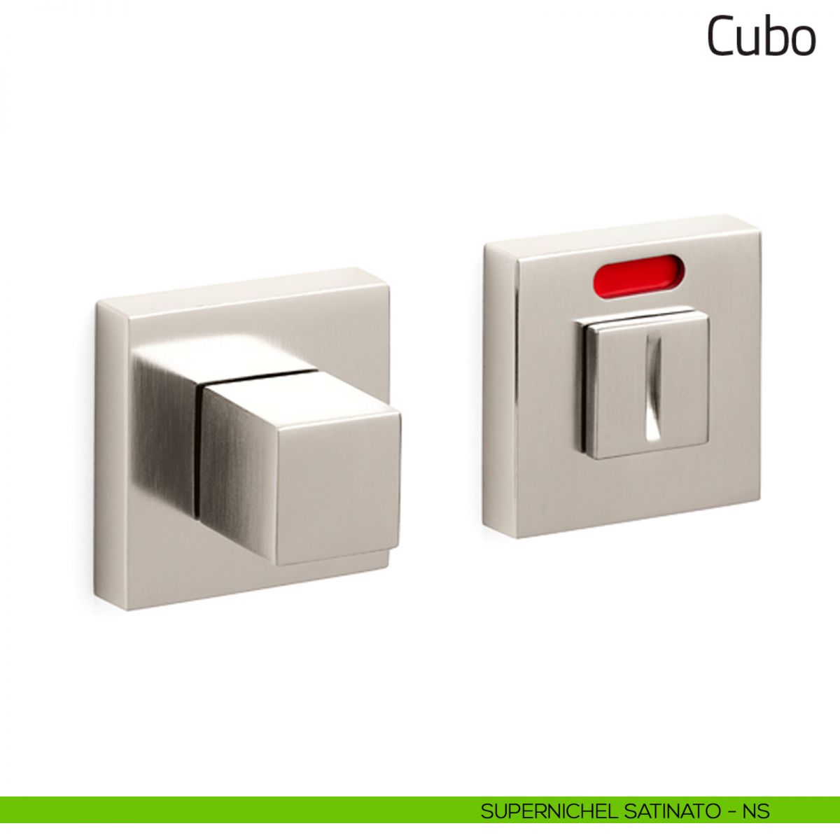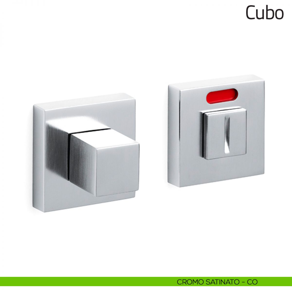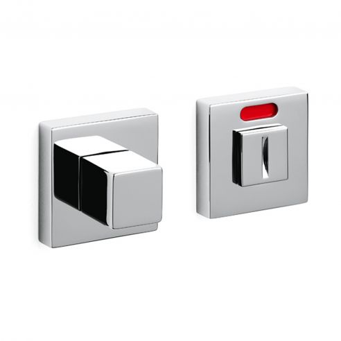 Nottolino per porta Cubo Olivari con rosetta quadrata e segnalatore libero/occupato.