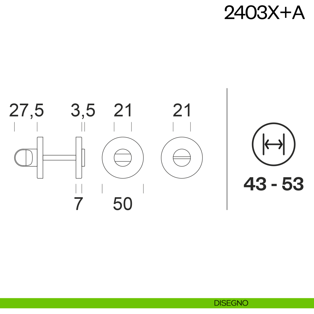 Nottolino per porta 2403X dnd Handles con rosetta tonda. Design by Martinelli Lab.