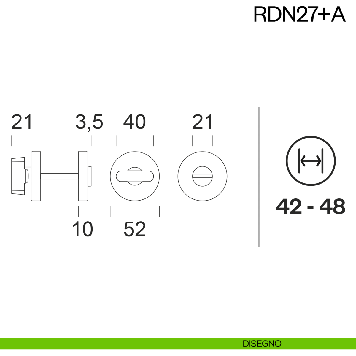 Nottolino per porta RDN27 dnd Handles con rosetta tonda. Design by Dnd Technical Division.